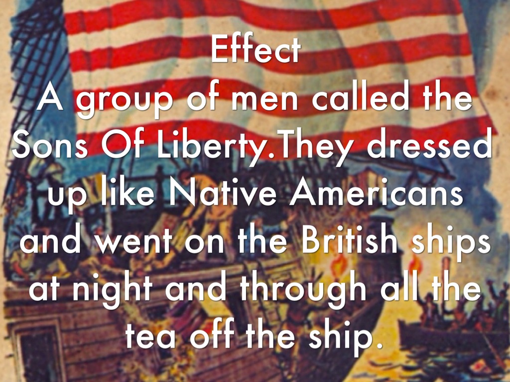 A group of men called the Sons Of Liberty.They dressed up like Native Americans and went on the British ships at night and through all the tea off the ship.