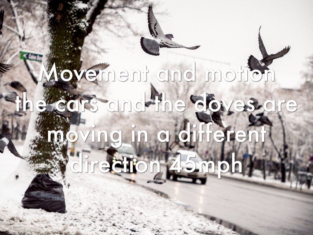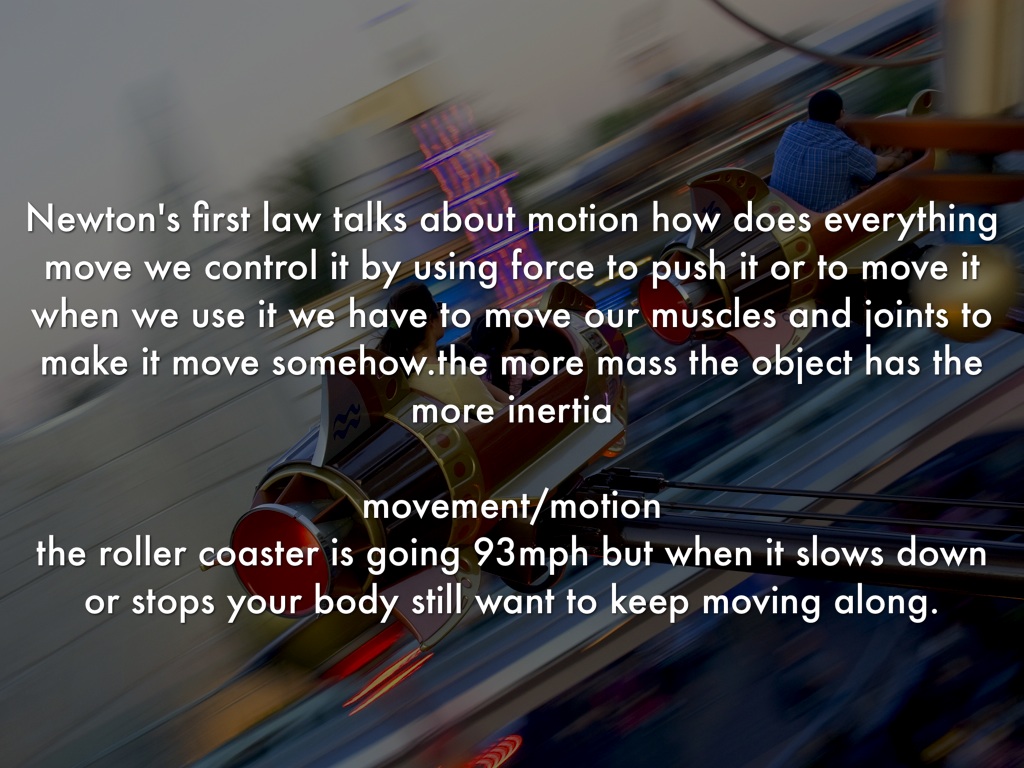 movement/motion the roller coaster is going 93mph but when it slows down or stops your body still want to keep moving along.