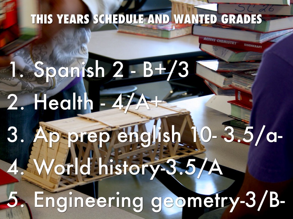 I WANT MY GRADES TO BE A 3.25 OR HIGHER FOR ALL OF HIGH SCHOOL