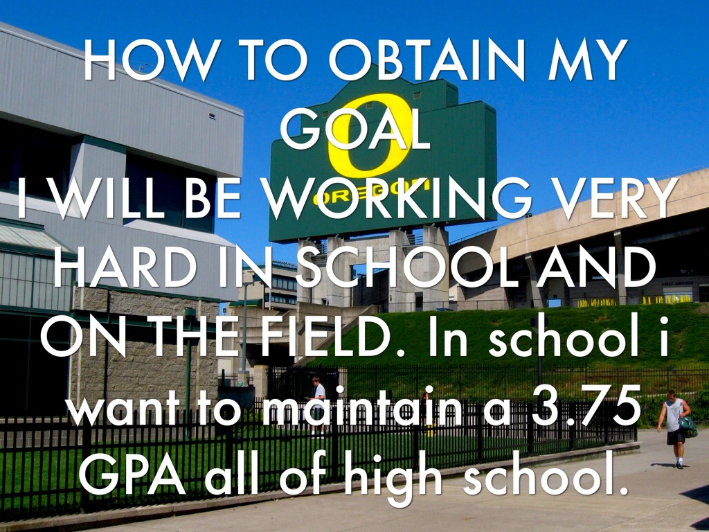 I WILL BE WORKING VERY HARD IN SCHOOL AND ON THE FIELD. In school i want to maintain a 3.75 GPA all of high school.
