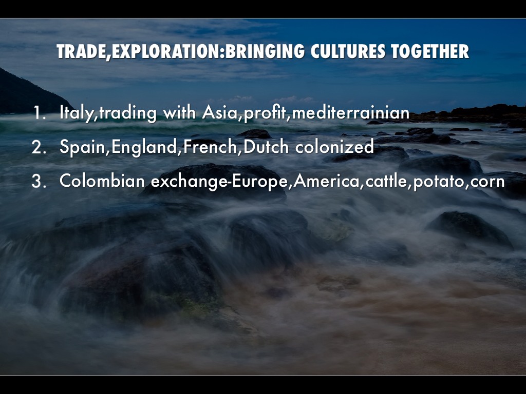 TRADE,EXPLORATION:BRINGING CULTURES TOGETHER