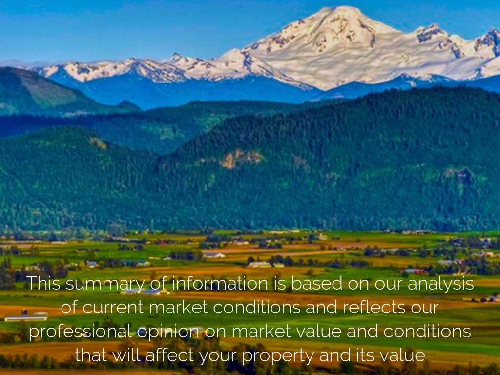 This summary of information is based on our analysis of current market conditions and reflects our professional opinion on market value and conditions that will affect your property and its value