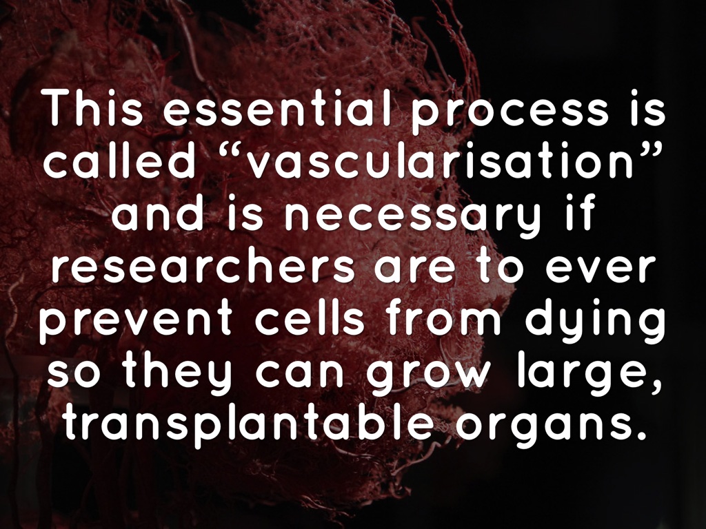 This essential process is called “vascularisation” and is necessary if researchers are to ever prevent cells from dying so they can grow large, transplantable organs.