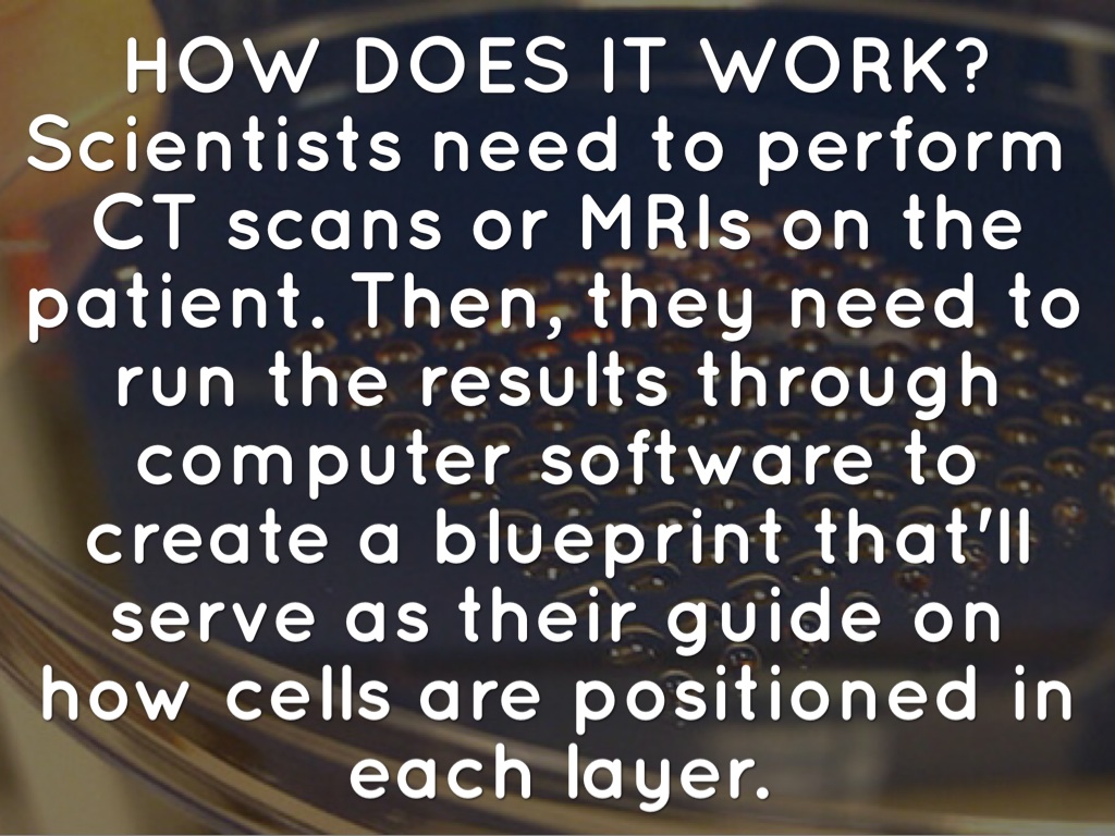 Scientists need to perform CT scans or MRIs on the patient. Then, they need to run the results through computer software to create a blueprint that'll serve as their guide on how cells are positioned in each layer.