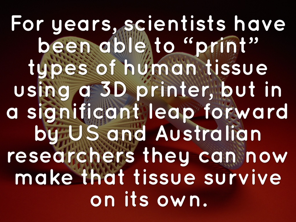 For years, scientists have been able to “print” types of human tissue using a 3D printer, but in a significant leap forward by US and Australian researchers they can now make that tissue survive on its own.