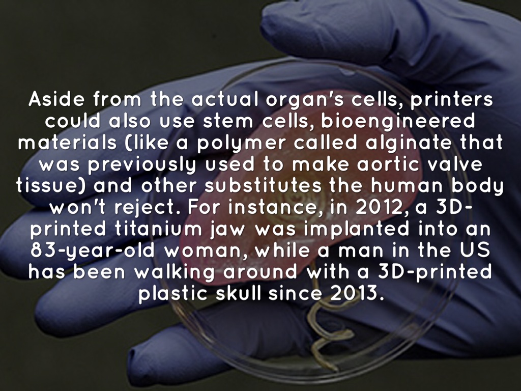 Aside from the actual organ's cells, printers could also use stem cells, bioengineered materials (like a polymer called alginate that was previously used to make aortic valve tissue) and other substitutes the human body won't reject. For instance, in 2012, a 3D-printed titanium jaw was implanted into an 83-year-old woman, while a man in the US has been walking around with a 3D-printed plastic skull since 2013.