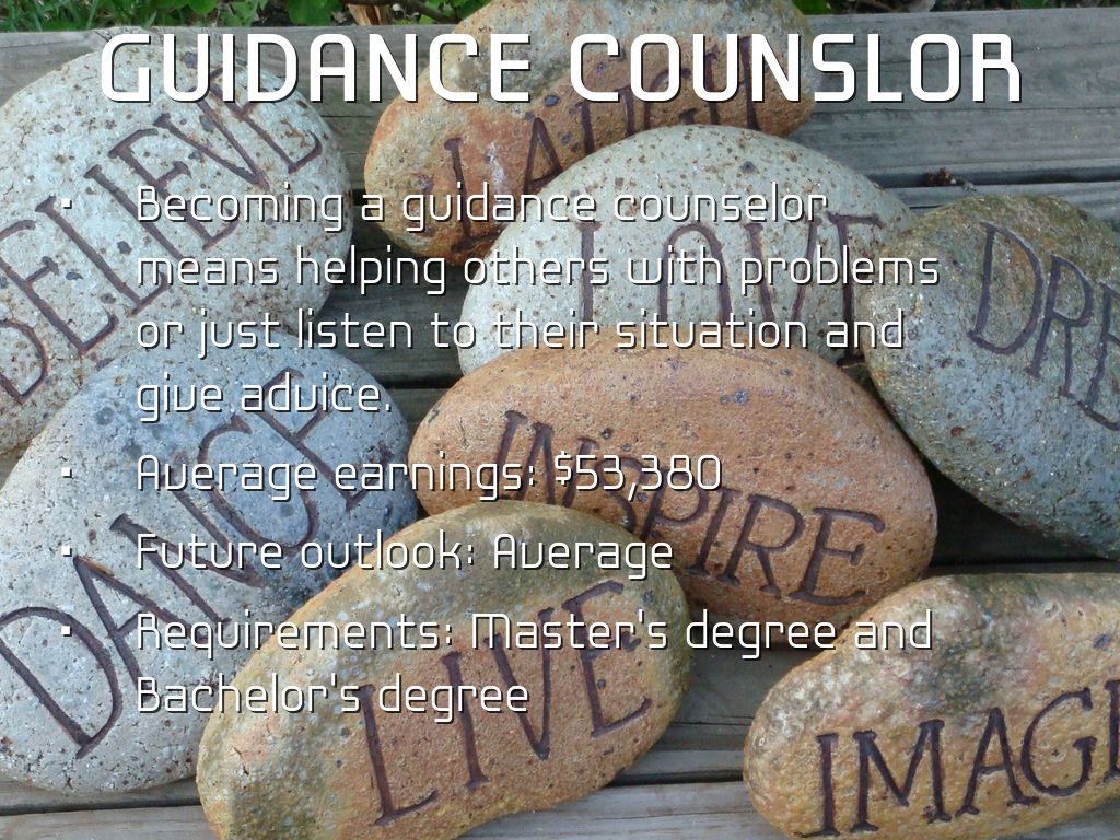 • Becoming a guidance counselor means helping others with problems or just listen to their situation and give advice.