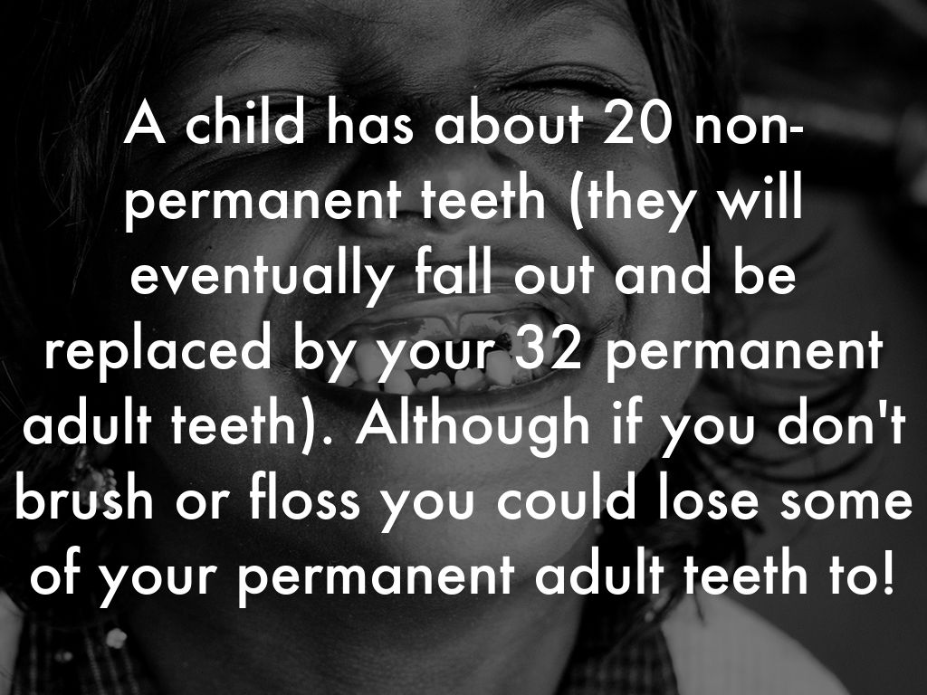 A child has about 20 non-permanent teeth (they will eventually fall out and be replaced by your 32 permanent adult teeth). Although if you don't brush or floss you could lose some of your permanent adult teeth to!