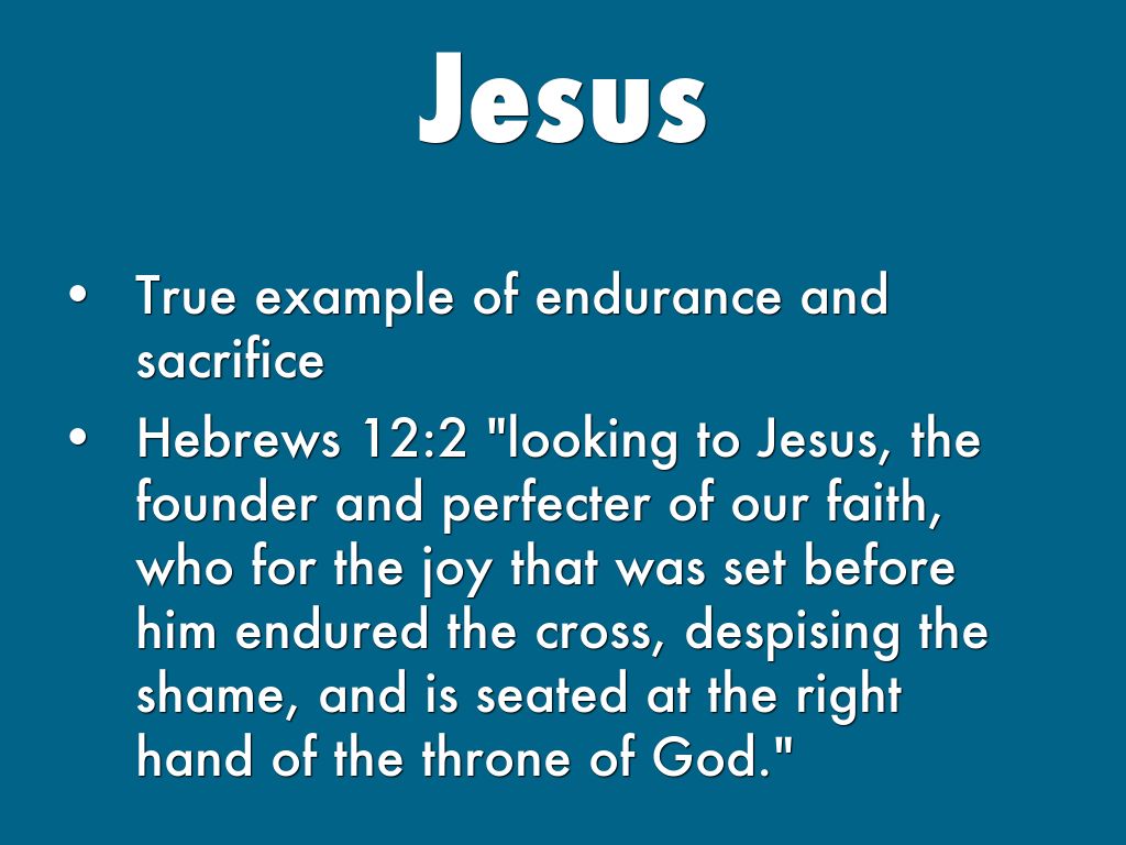 - Hebrews 12:2 "looking to Jesus, the founder and perfecter of our faith, who for the joy that was set before him endured the cross, despising the shame, and is seated at the right hand of the throne of God."