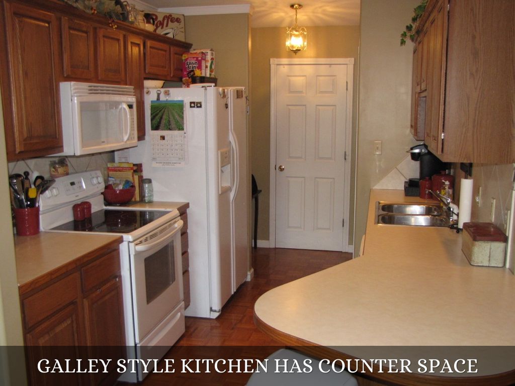 GALLEY STYLE KITCHEN HAS COUNTER SPACE