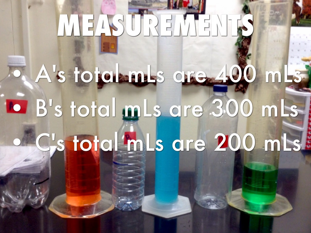 3.Evan will take a graduated cyclinder and measure C's mLs