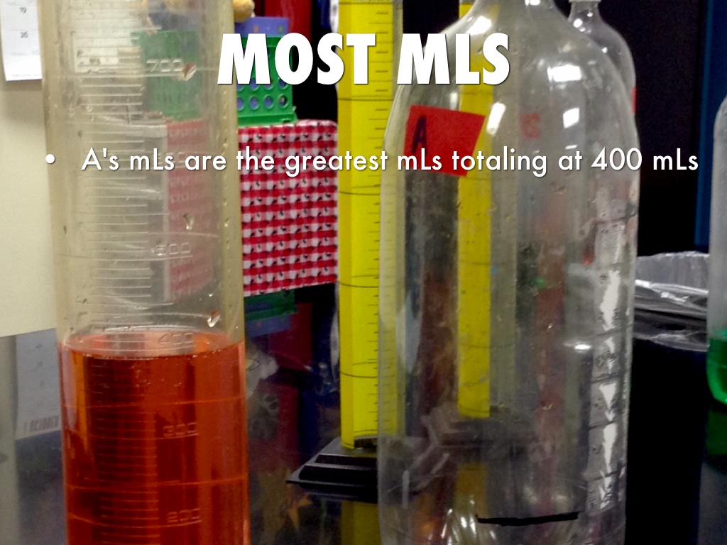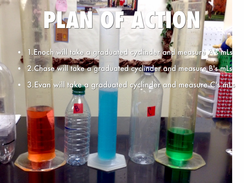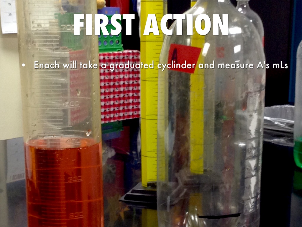 1.Enoch will take a graduated cyclinder and measure A's mLs