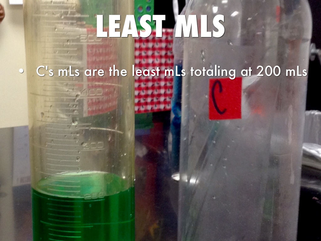 C's mLs are the least mLs totaling at 200 mLs