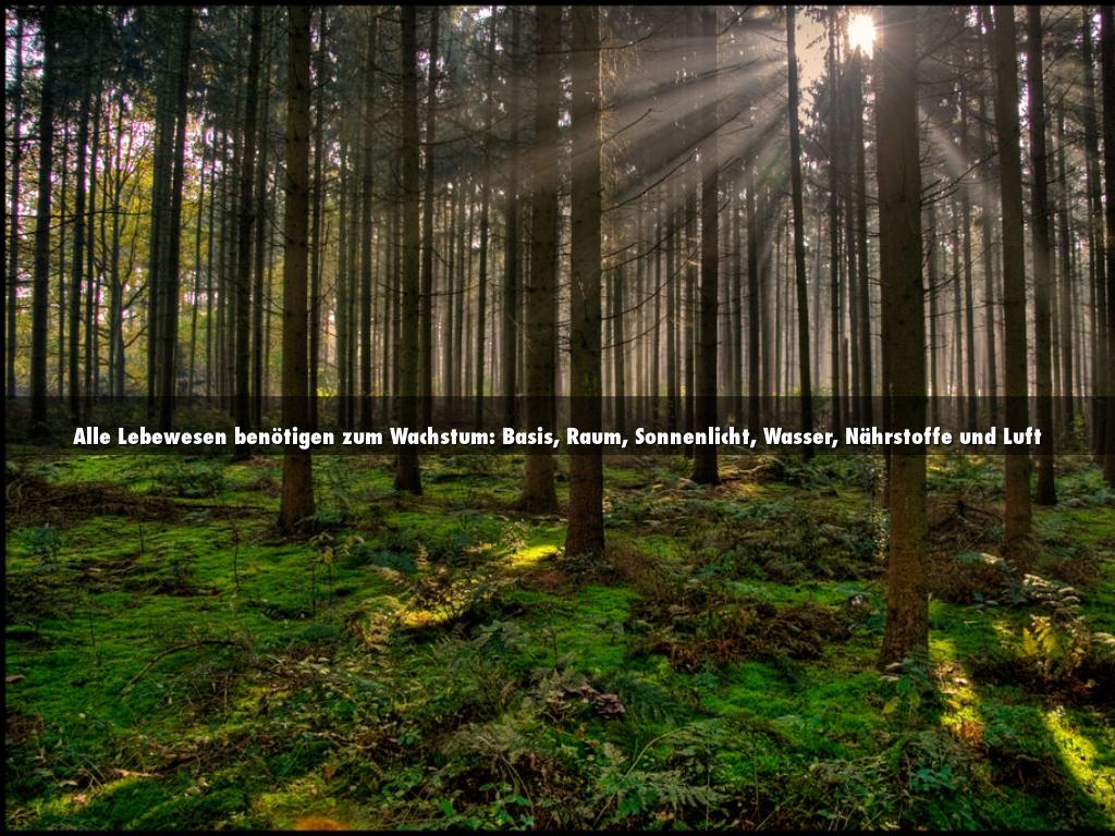 Alle Lebewesen benötigen zum Wachstum: Basis, Raum, Sonnenlicht, Wasser, Nährstoffe und Luft