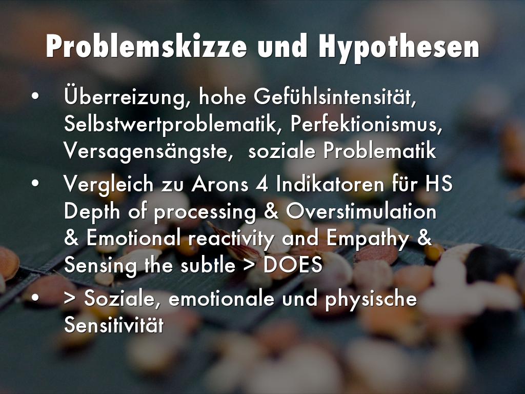 Überreizung, hohe Gefühlsintensität, Selbstwertproblematik, Perfektionismus, Versagensängste, soziale Problematik