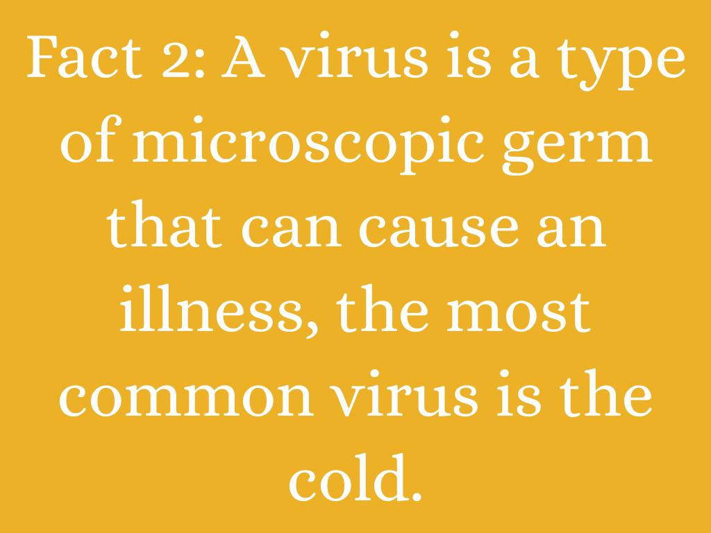 Fact 2: A virus is a type of microscopic germ that can cause an illness, the most common virus is the cold.