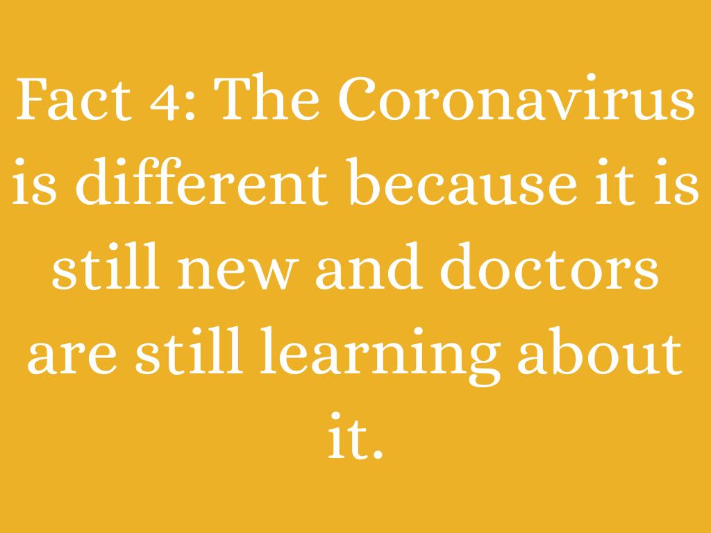 Fact 4: The Coronavirus is different because it is still new and doctors are still learning about it.
