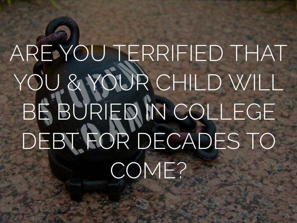 ARE YOU TERRIFIED THAT YOU & YOUR CHILD WILL BE BURIED IN COLLEGE DEBT FOR DECADES TO COME?