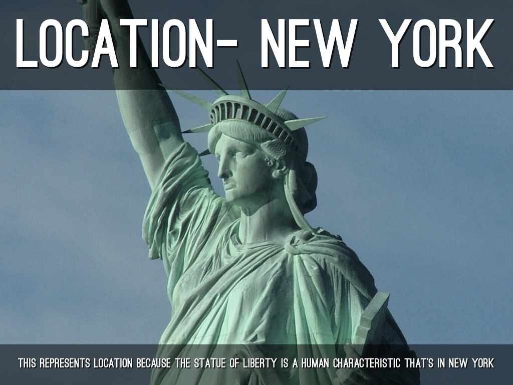 THIS REPRESENTS LOCATION BECAUSE THE STATUE OF LIBERTY IS A HUMAN CHARACTERISTIC THAT'S IN NEW YORK