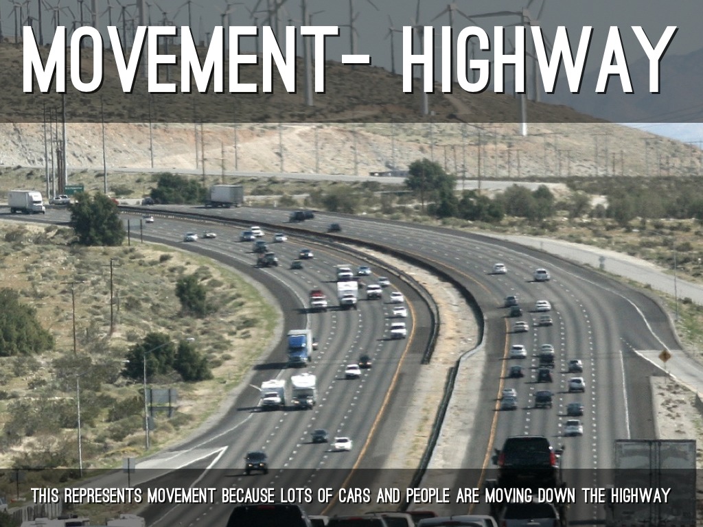 THIS REPRESENTS MOVEMENT BECAUSE LOTS OF CARS AND PEOPLE ARE MOVING DOWN THE HIGHWAY