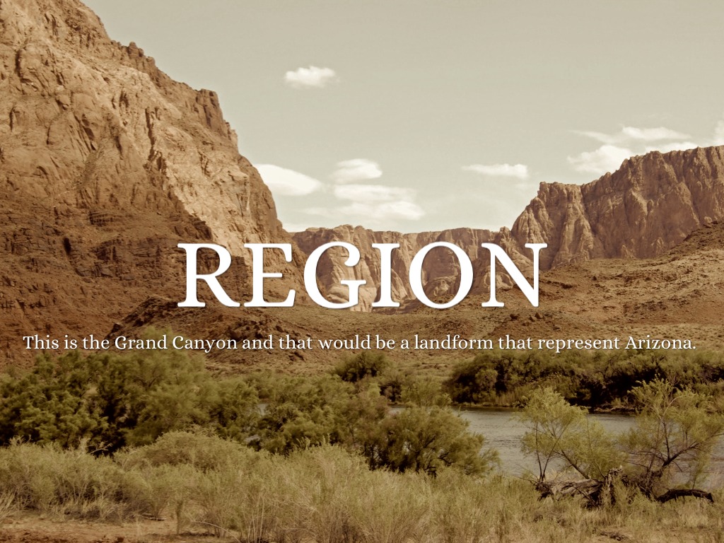 This is the Grand Canyon and that would be a landform that represent Arizona.