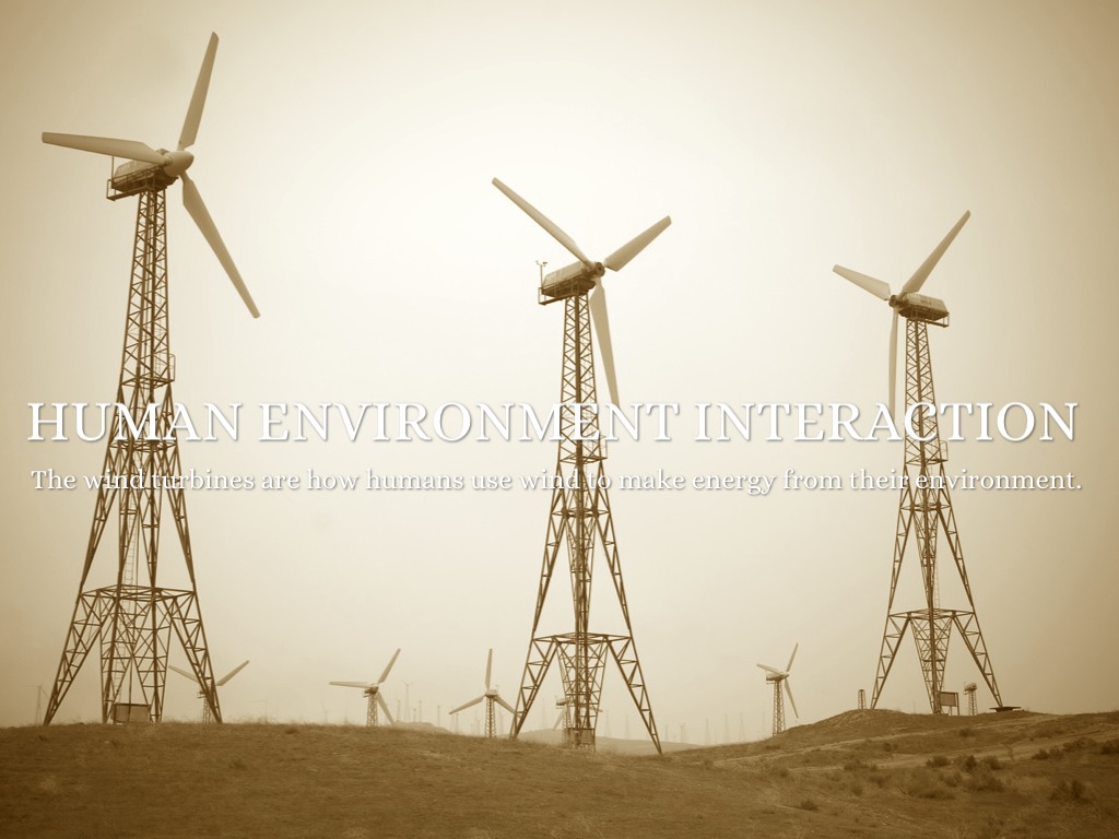 The wind turbines are how humans use wind to make energy from their environment.