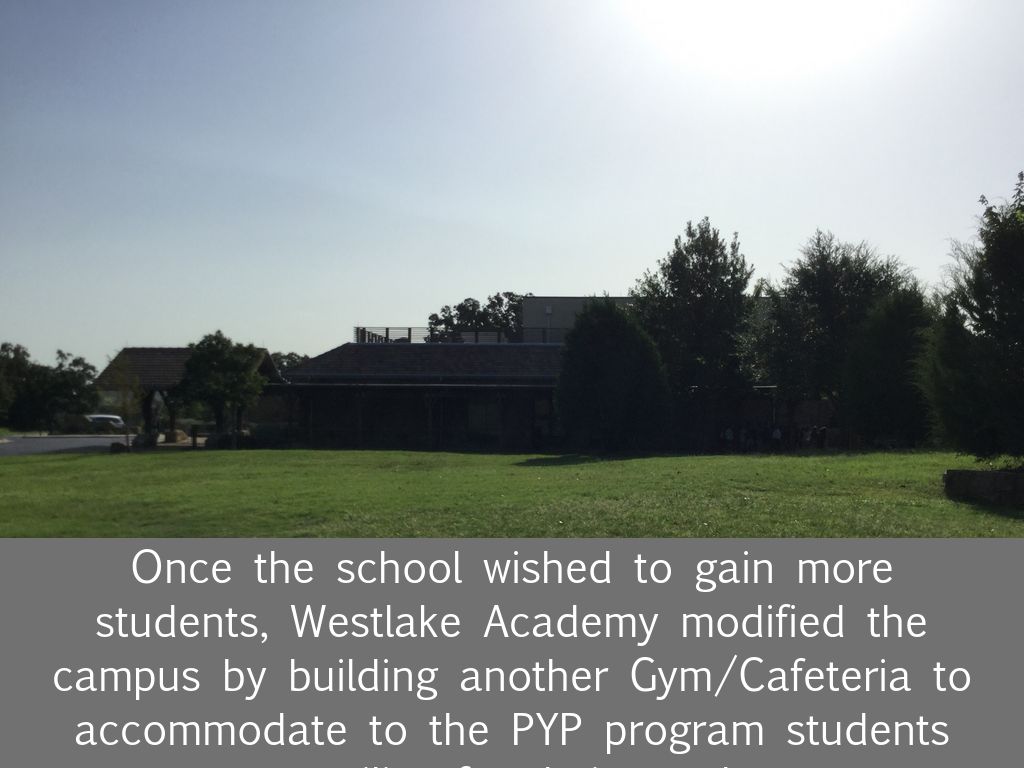 Once the school wished to gain more students, Westlake Academy modified the campus by building another Gym/Cafeteria to accommodate to the PYP program students to utilize for their needs.