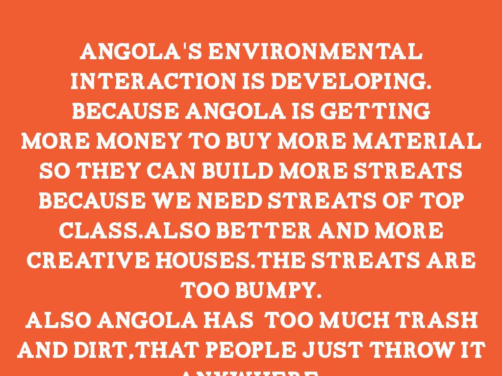 Also Angola has too much Trash and dirt,that people just throw it anywhere.