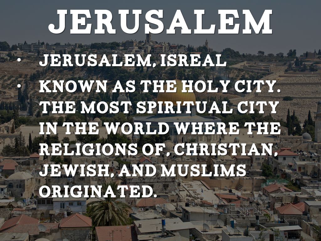 Known as the holy city. The most spiritual city in the world where the religions of, christian, jewish, and muslims originated.