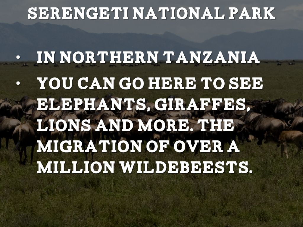 You can go here to see elephants, giraffes, lions and more. The migration of over a million wildebeests.