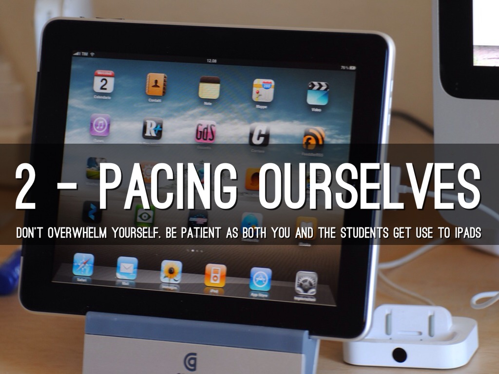 DON'T OVERWHELM YOURSELF. BE PATIENT AS BOTH YOU AND THE STUDENTS GET USE TO IPADS