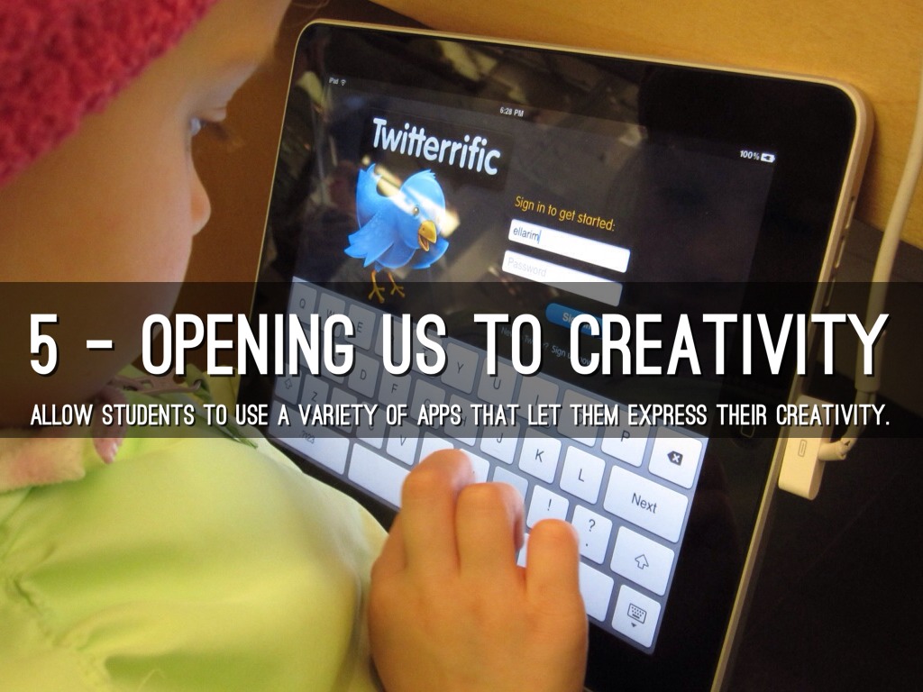 ALLOW STUDENTS TO USE A VARIETY OF APPS THAT LET THEM EXPRESS THEIR CREATIVITY.