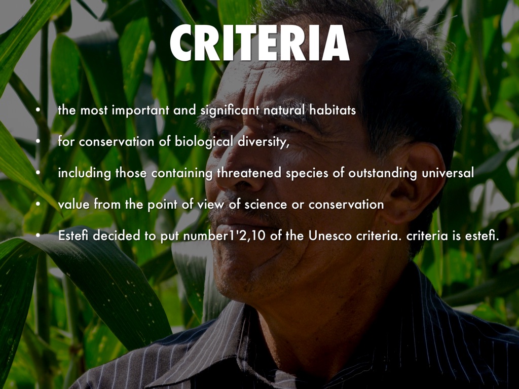 Estefi decided to put number1'2,10 of the Unesco criteria. criteria is estefi.