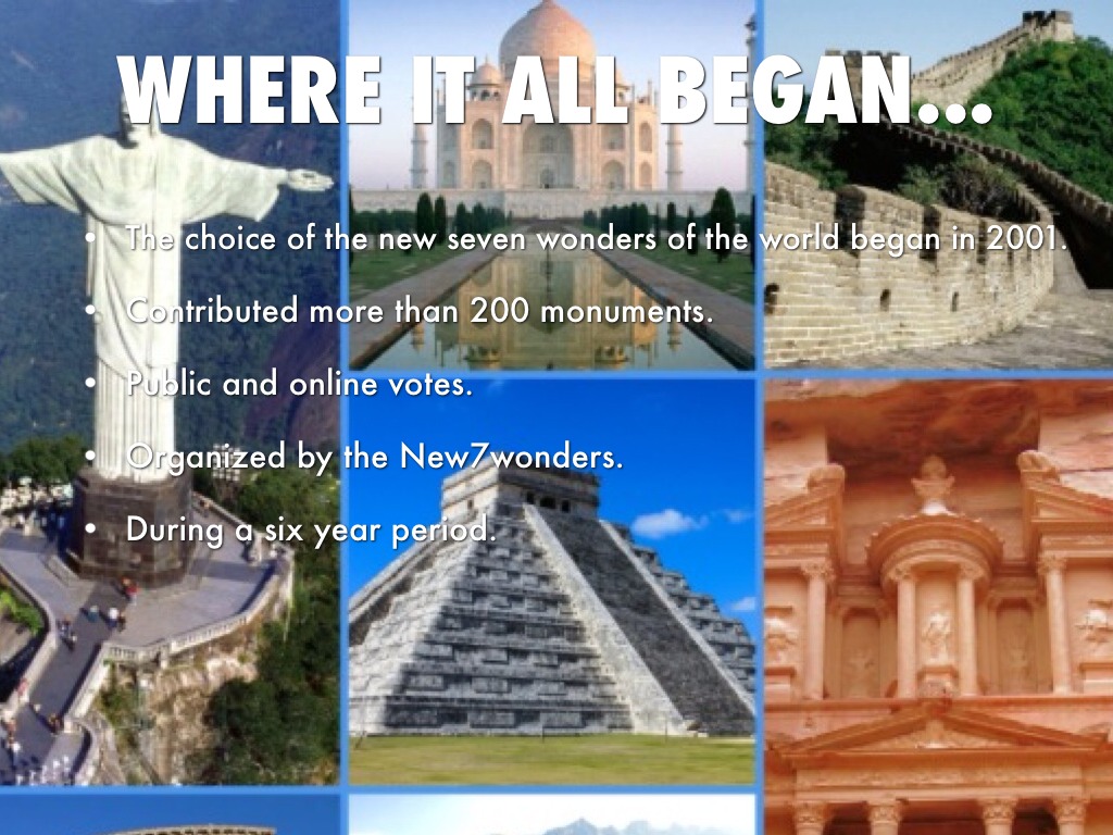 The choice of the new seven wonders of the world began in 2001.