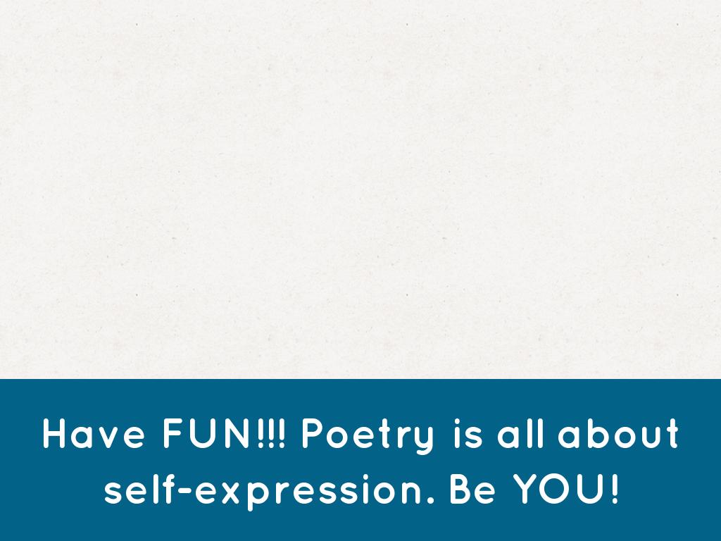 Have FUN!!! Poetry is all about self-expression. Be YOU!