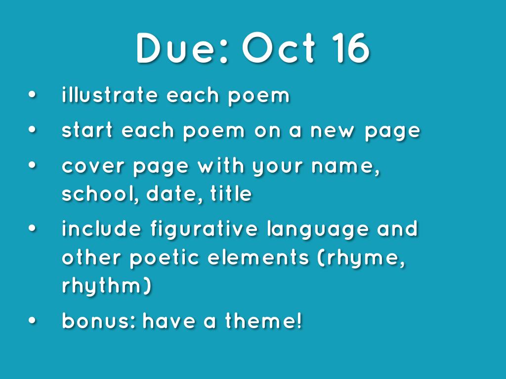 • include figurative language and other poetic elements (rhyme, rhythm)