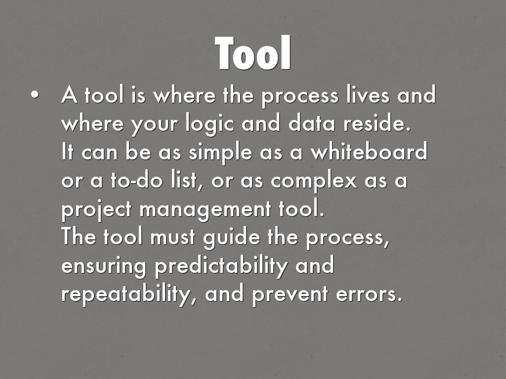 A tool is where the process lives and where your logic and data reside.