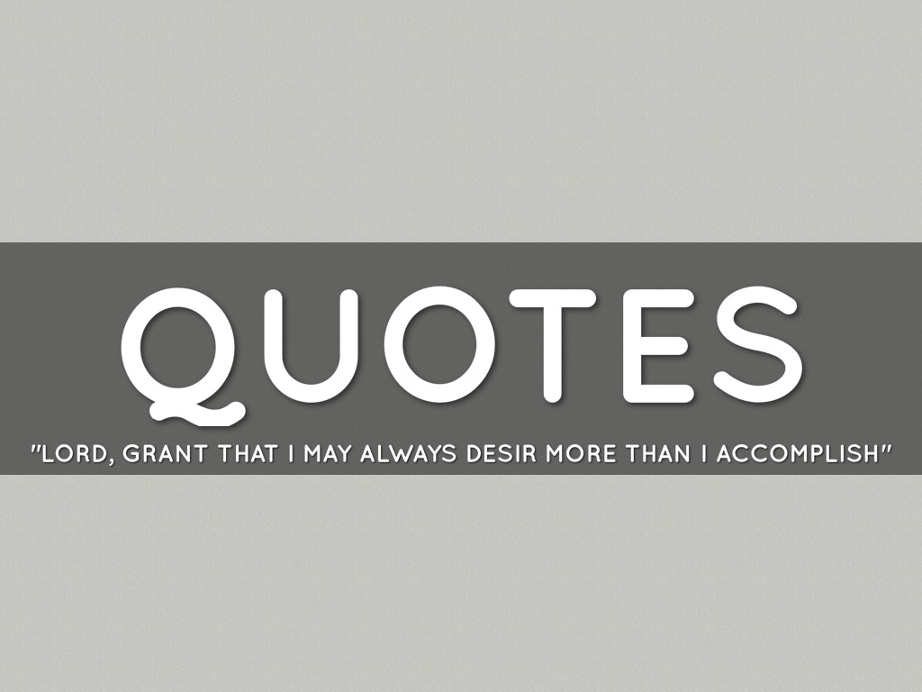 "LORD, GRANT THAT I MAY ALWAYS DESIR MORE THAN I ACCOMPLISH"