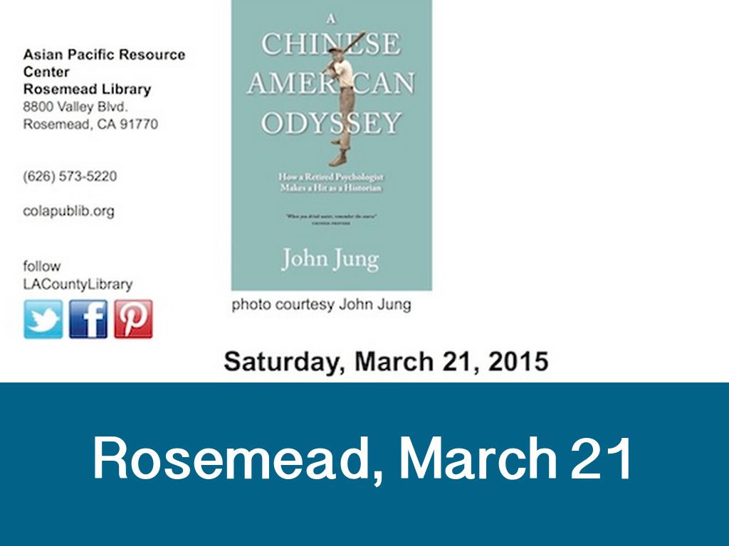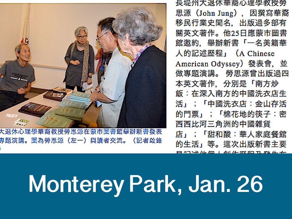 Scenes from early 2015 "A Chinese American Odyssey" book talks and signings by John Jung.