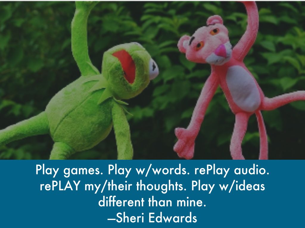 Play games. Play w/words. rePlay audio. rePLAY my/their thoughts. Play w/ideas different than mine.