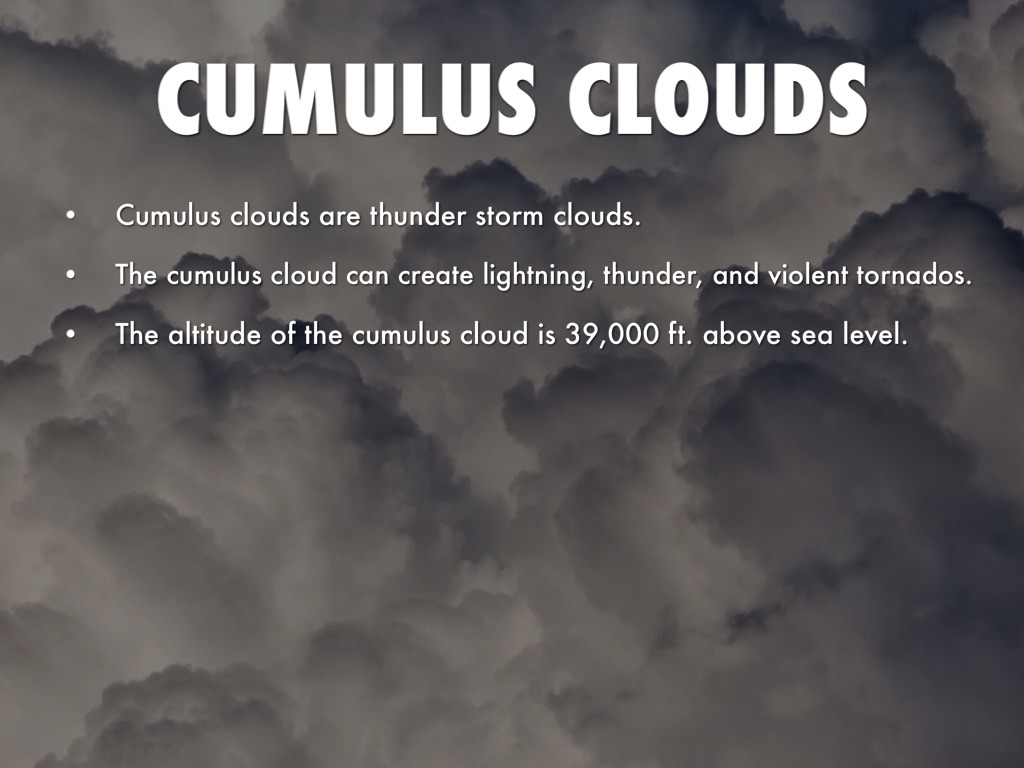 The cumulus cloud can create lightning, thunder, and violent tornados.