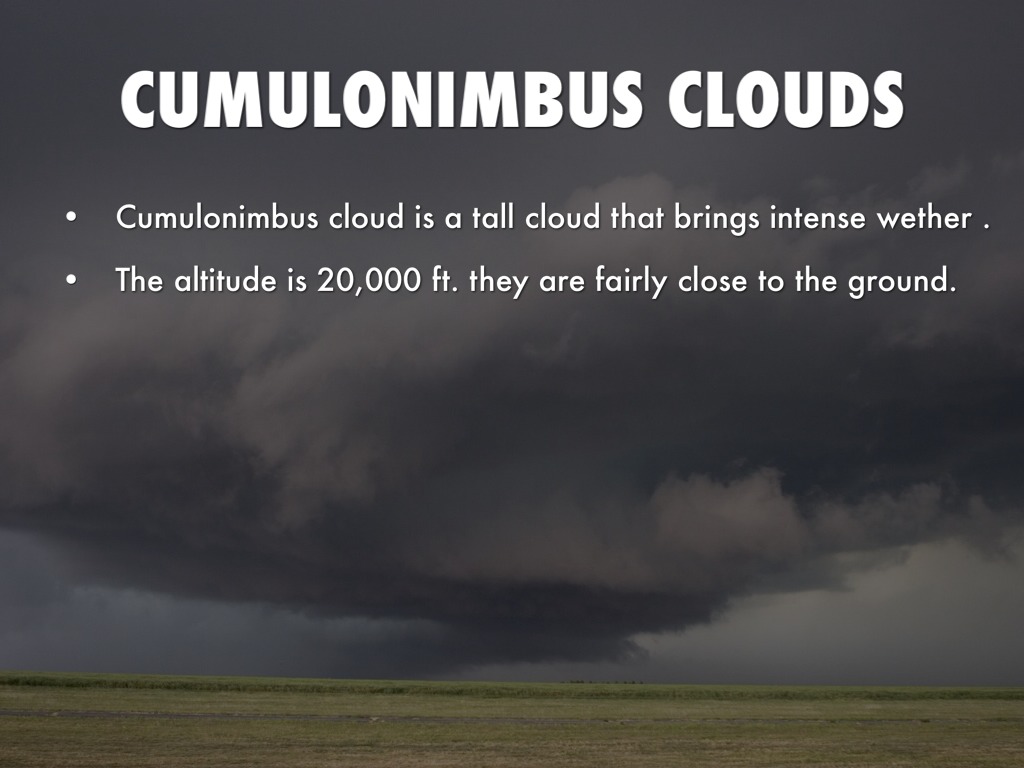 Cumulonimbus cloud is a tall cloud that brings intense wether .