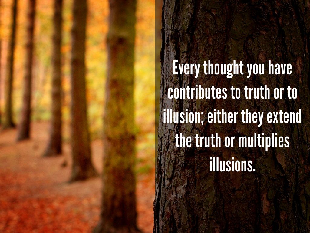 Every thought you have contributes to truth or to illusion; either they extend the truth or multiplies illusions.