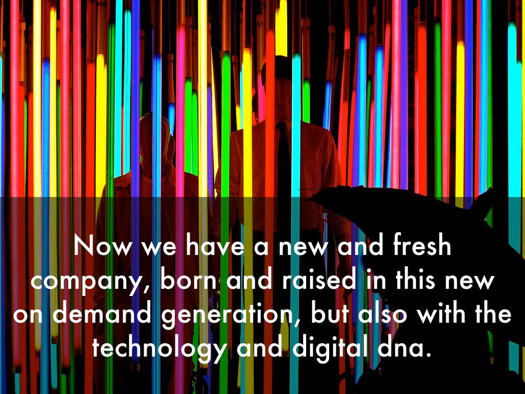 Now we have a new and fresh company, born and raised in this new on demand generation, but also with the technology and digital dna.