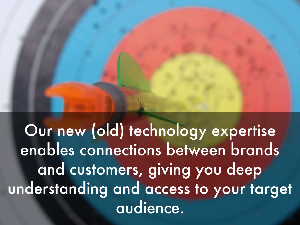 Our new (old) technology expertise enables connections between brands and customers, giving you deep understanding and access to your target audience.