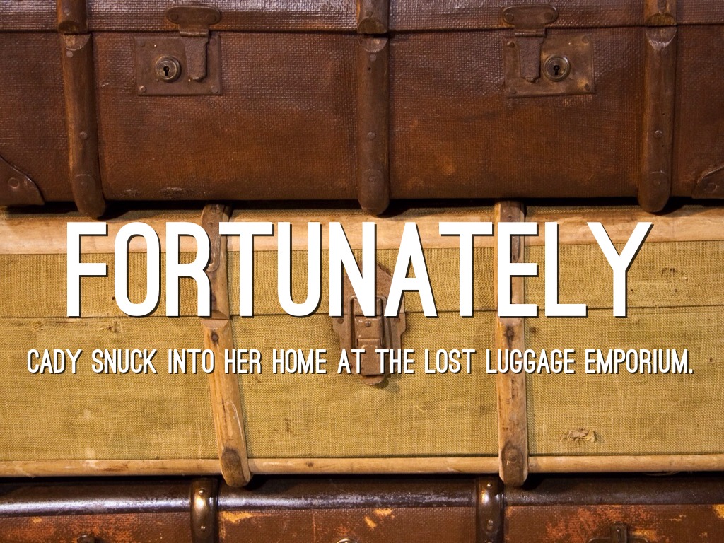 CADY SNUCK INTO HER HOME AT THE LOST LUGGAGE EMPORIUM.