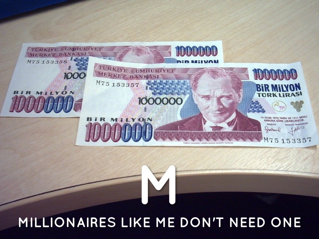 MILLIONAIRES LIKE ME DON'T NEED ONE