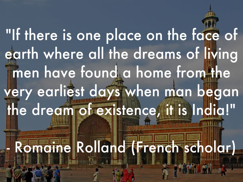 "If there is one place on the face of earth where all the dreams of living men have found a home from the very earliest days when man began the dream of existence, it is India!"
