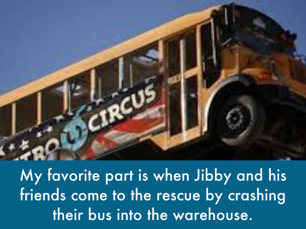My favorite part is when Jibby and his friends come to the rescue by crashing their bus into the warehouse.