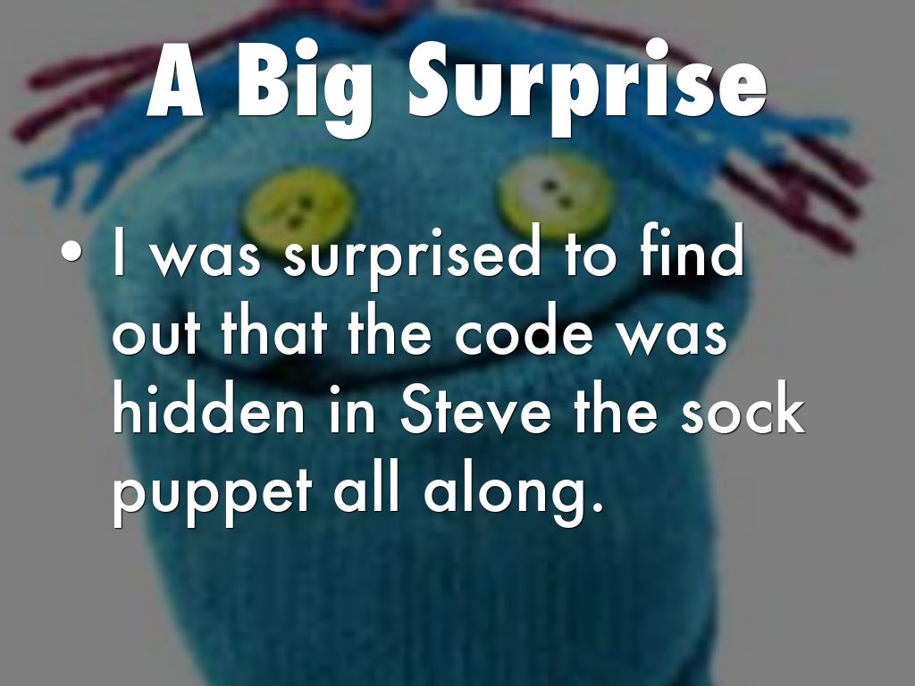 - I was surprised to find out that the code was hidden in Steve the sock puppet all along.
